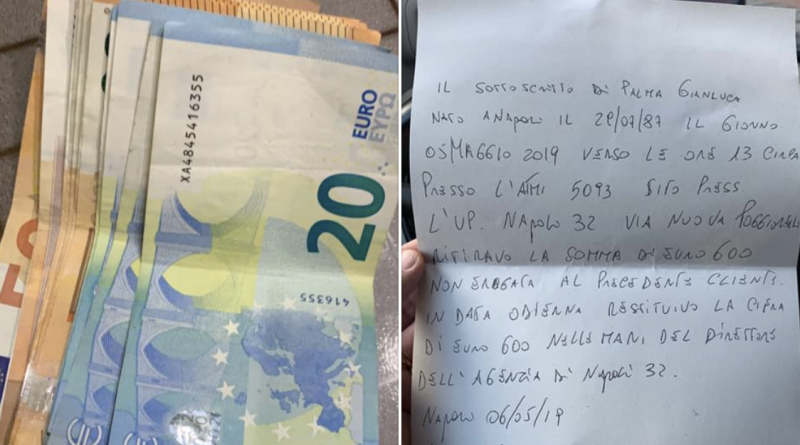 Quello nel riquadro è il messaggio scritto da Gianluca Di Palma, 33enne di Napoli, che si è reso protagonista di un’azione da libro Cuore. Dopo aver “ricevuto” involontariamente dal bancomat la somma di 600 euro, destinata ad altro utente, ha pensato bene di restituirla all’ufficio postale, perché fosse poi consegnata al legittimo proprietario. Un gesto nobile, apprezzato da tante persone che nel profilo Facebook di Gianluca, hanno manifestato la propria convinta approvazione.
