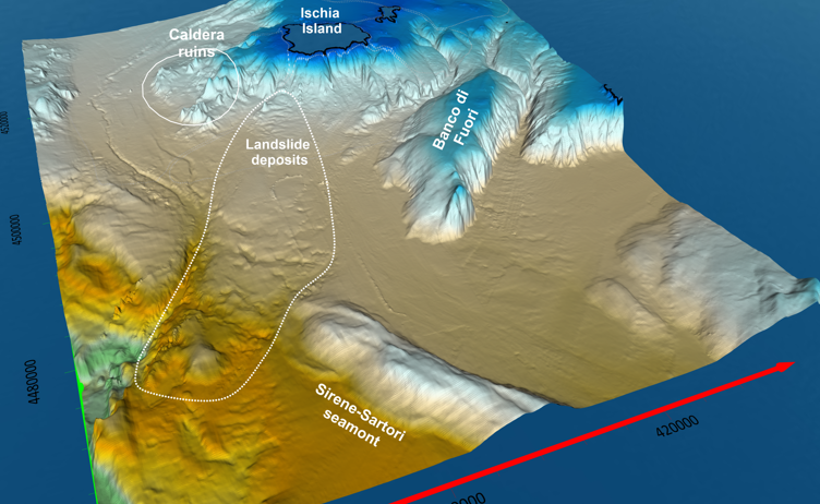 Nuove indagini magnetiche su un sistema vulcanico sottomarino attivo situato al largo della costa occidentale dell’Italia, in corrispondenza dei Campi Flegrei e dell’Isola di Ischia, hanno identificato sul fondale marino una serie di strutture geologiche finora sconosciute, tra cui i residui di un’antica caldera e una vasta frana.