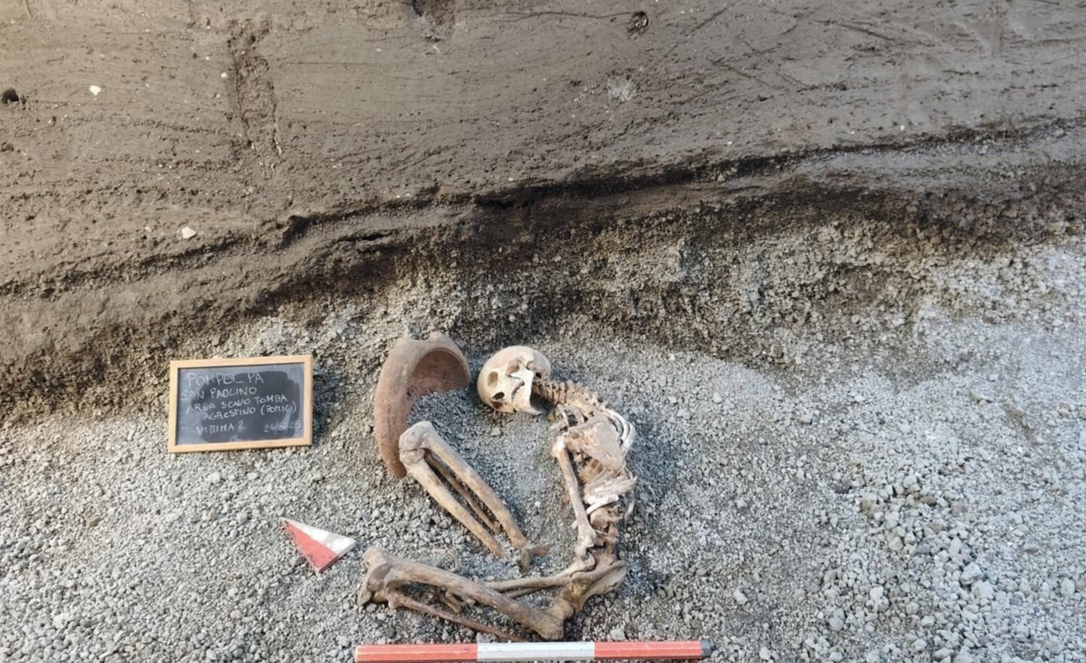 Il rinvenimento è avvenuto durante recenti scavi nell’area della necropoli di Porta Stabia, appena fuori le mura dell’antica Pompei, condotti nell’ambito del completamento dell’indagine sulla tomba a schola di Numerius Agrestinus Equitius Pulcher. Gli archeologi impegnati sul campo hanno portato alla luce i resti di due uomini che tentarono di fuggire verso la costa durante l’eruzione del Vesuvio del 79 d.C. I due individui, morti in momenti diversi dell’eruzione, offrono nuovi elementi per comprendere le dinamiche dell’evento e le condizioni affrontate dagli abitanti nelle vie di fuga.